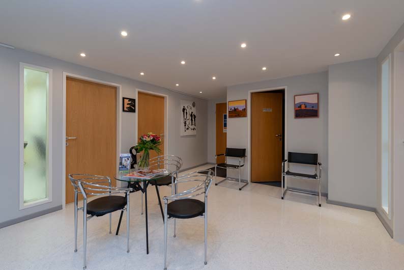 Unsere Praxisräume sind so gestaltet, dass Sie sich vom ersten Moment an wohlfühlen. Statt eines abgeschlossenen Wartezimmers erwartet Sie ein offener, heller Wartebereich mit komfortablen Sitzmöglichkeiten und Lesematerial, um die Wartezeit angenehm zu überbrücken. Wir legen großen Wert auf eine persönliche Betreuung und eine entspannte Atmosphäre während der Behandlung. Mit einer Kombination aus Fachkompetenz und Einfühlungsvermögen sorgen wir dafür, dass Sie sich bei uns gut aufgehoben fühlen.